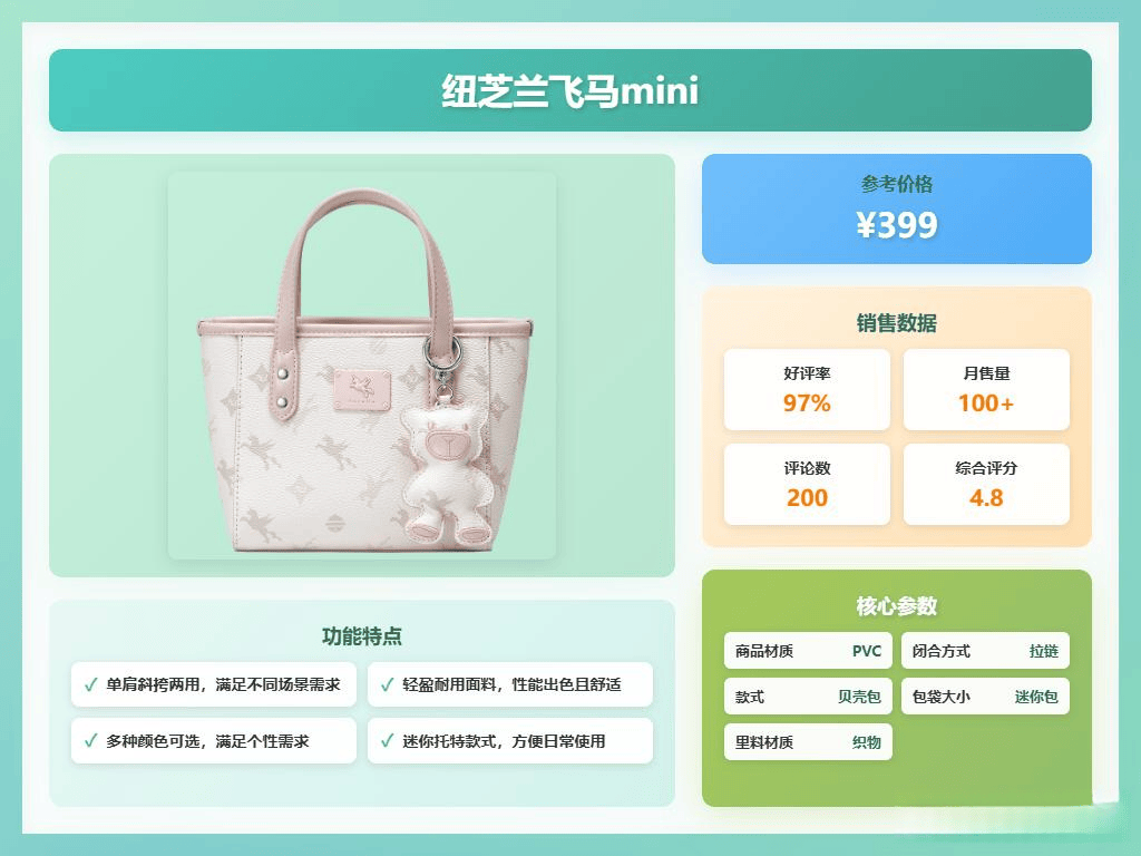 要说纽芝兰单肩包,款式真的蛮多的,看得人眼花缭乱。想买到对自己最合适的,首先得想清楚你主要用它来干嘛。如果是日常通勤,需要装电脑、文件啥的,那就选容量大一点、有隔层的,像纽芝兰大容量电脑包、飞马老花托特包这种就挺能装的。要是平时逛街或者出去玩,就带点小东西,那飞马mini或者小公文托特包这种轻便的就够用啦,而且可爱又时尚。
