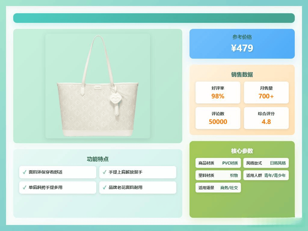 还得注意面料,耐磨、防水的肯定更实用,毕竟谁也不想背个用几次就坏掉的包包嘛!所以,容量、用途、面料,这几点可得好好考虑清楚哦!